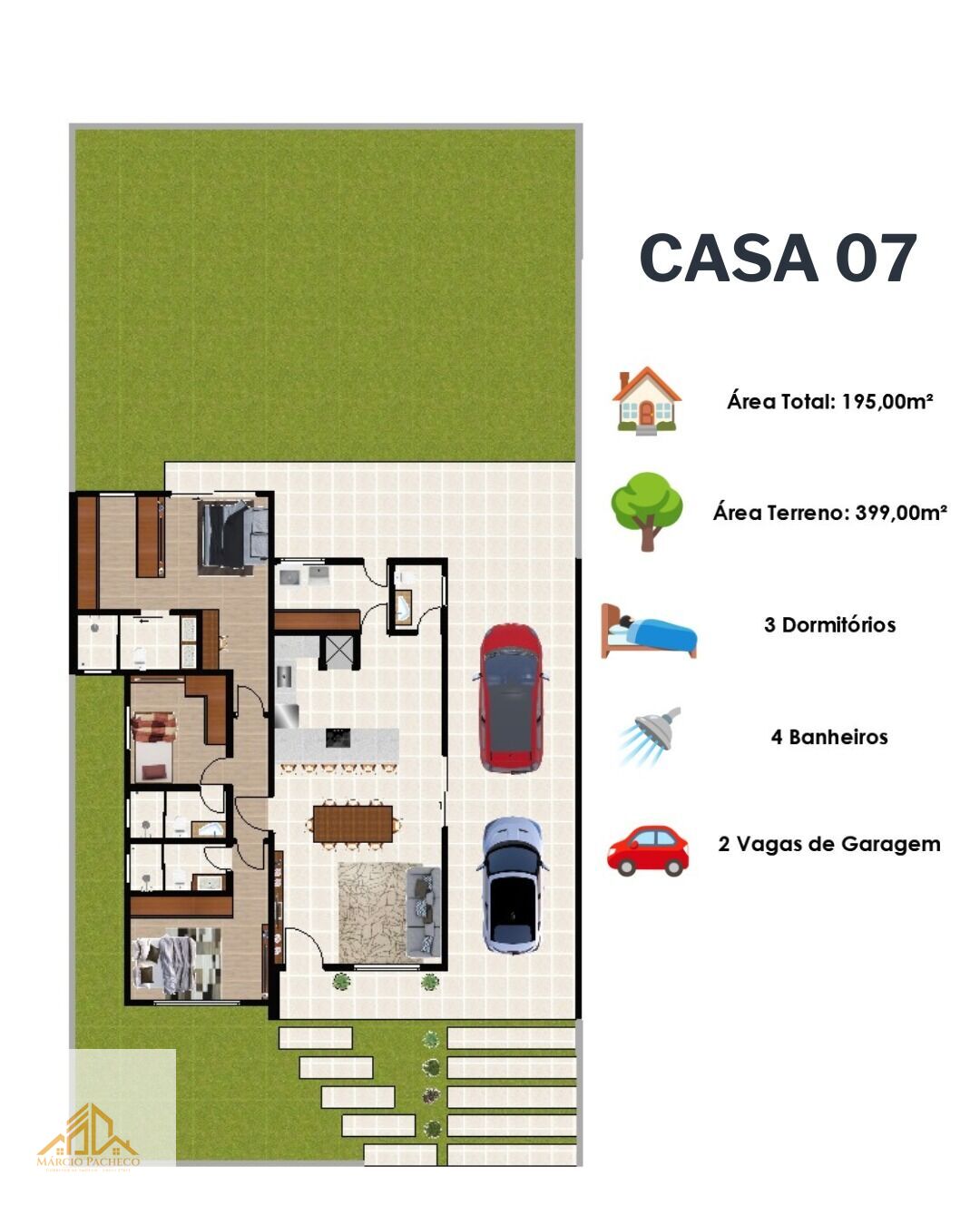 3 Dormitórios, sendo 3 suítesGaragens